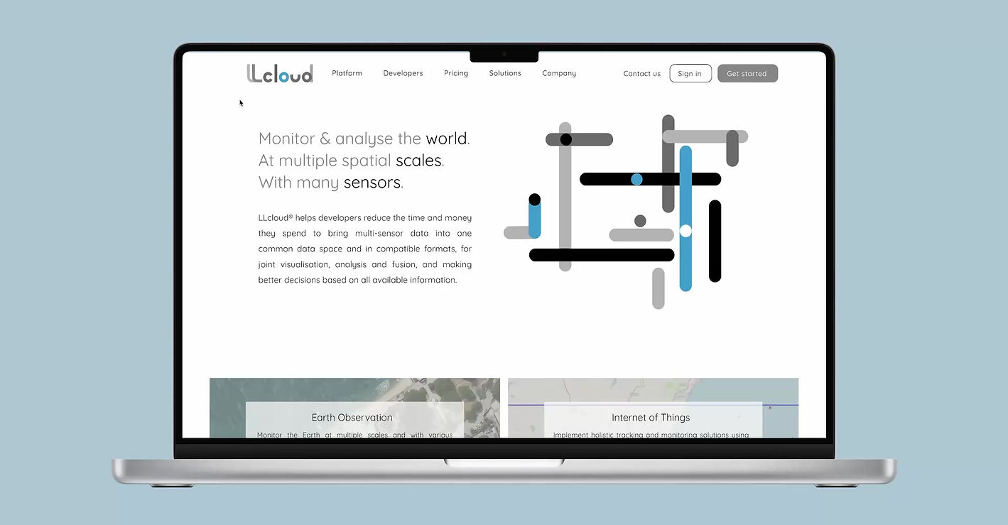 As the lead UI/UX and product designer at LLcloud, I was responsible for shaping the platform’s branding and design to make complex Earth Observation, IoT, and wearable data accessible and visually engaging to the companies clients. I worked alongside the team to ensure easy multi-sensor integration, using custom animations inspired by Piet Mondrian’s visual language and the Powers of Ten film by Charles and Ray Eames. My work included wireframing, prototyping, creating the visual identity, optimising the SEO and conducting usability tests to ensure the platform was intuitive and visually engaging.